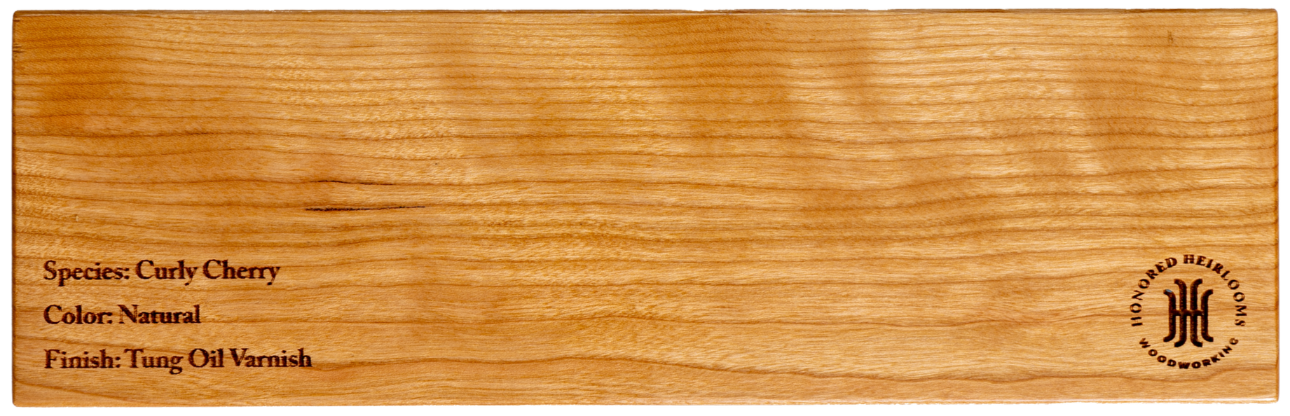 Curly cherry offers all the warmth of traditional cherry with added visual depth. Its distinctive “curl” or ripple figure shimmers as light moves across the surface, giving the wood a lively, almost three-dimensional effect. This figure is naturally occurring and highly sought after. Curly cherry is often reserved for statement pieces or accent elements where its unique character can truly shine.